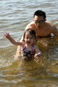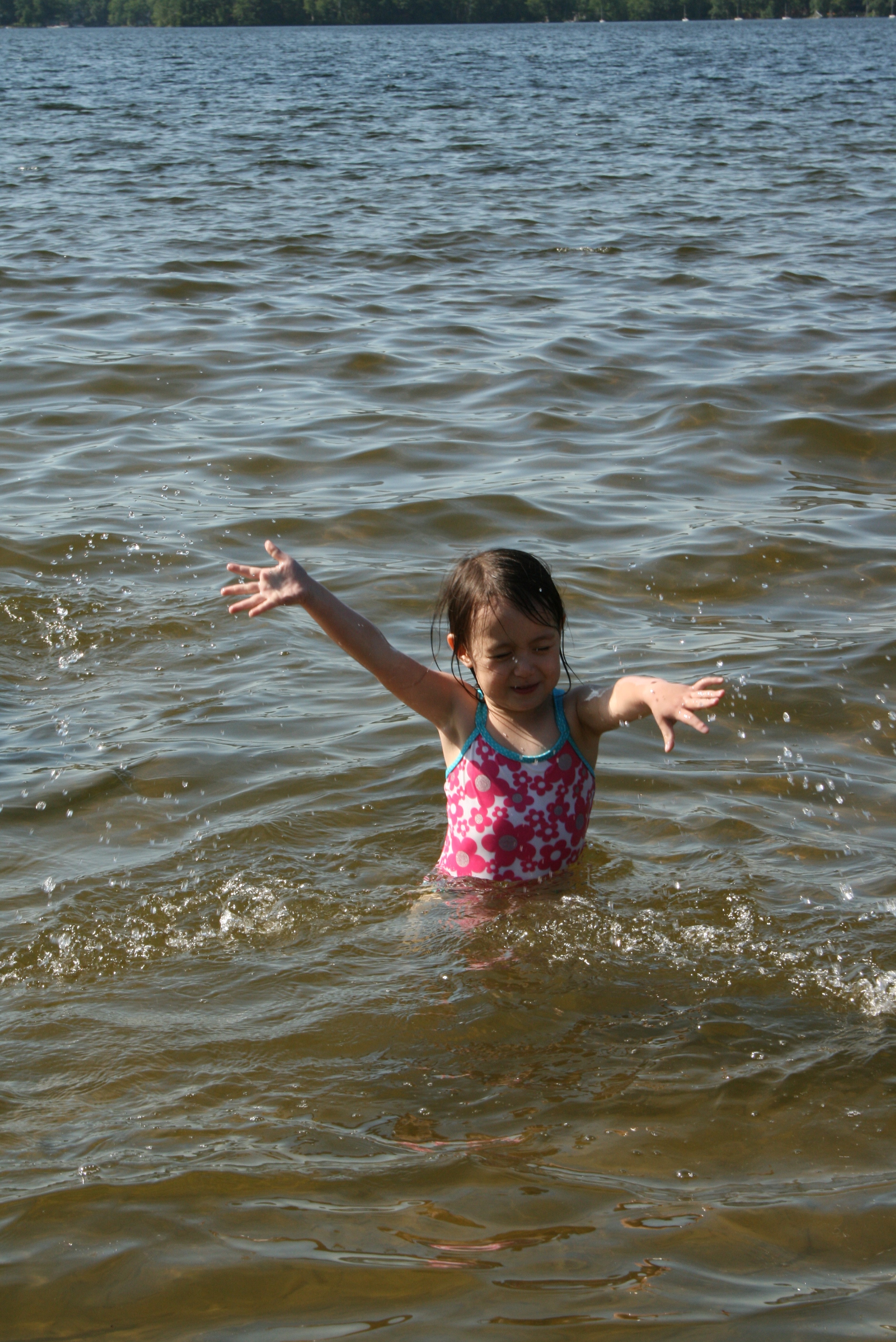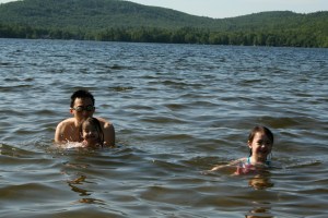 One of the highlights of the past week was our first visit to Lake Dunmore. This is a pristine lake about 20 minutes from our house, surrounded by quaint cottages and campsites. At one end is a public park complete with a lawn, beach, and playground. The girls splashed to their hearts’ content, and then we had a picnic dinner on the lawn, followed by ice creams at the Kampersville Deli on the way home. It doesn’t get much better than that.