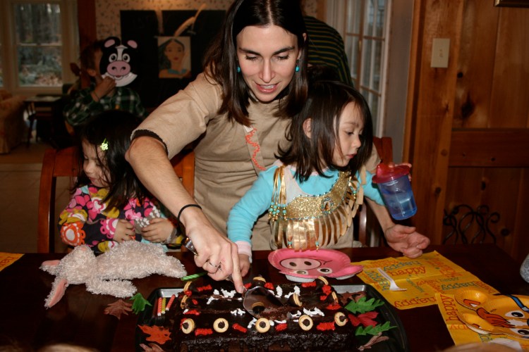 Fiona had a spectacular 4th birthday. It involved 2 days of celebration, beginning with cupcakes at preschool, continuing on to a family party, and continuing further with her “friend party” today. As I sit to write this, I have just recently survived a house full of 11 children under the age of 5. So I am going to smack up some photos and then go have a glass of Scotch. If you’d like a more sentimental glimpse of Fiona, please read the previous post; this is all about the parties!