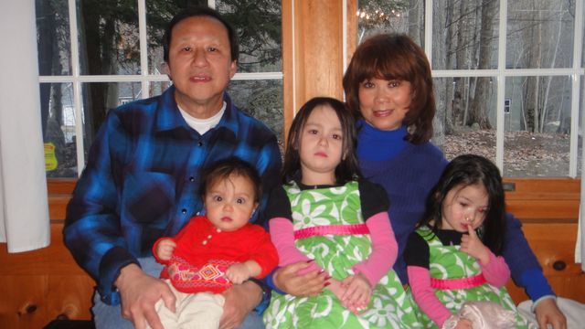 The three sick Gong girls with Granddaddy and Grandmommy at the end of their visit.