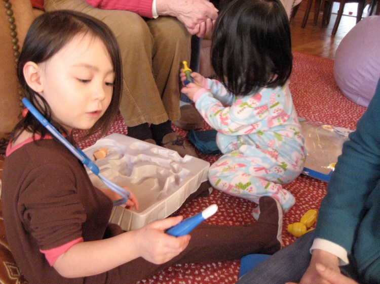 Here’s a little insight into how I work: my sacred times of day are naptime (roughly 1-3 PM) and bedtime (after about 7:30 PM, depending on how long it takes the girls to unwind), and it’s during those times that I sit down at my laptop and write things for this blog. It’s also during those times that I clean the house, prep meals, and work on any other household projects. (And shower, although not very often). But lately, the thing I’ve been enjoying most is writing these posts. That may not be saying much when the other option is scrubbing toilets, but I truly love writing. I’ve always loved writing, but now that I’m home with three girls it feels particularly necessary. It feeds the creative part of my brain, as well as the adult conversation part of my brain — even if the conversation is one-sided most of the time. I suppose it’s kind of like writing in a journal. The “social media” aspect is nice, because I’ve never been much good on the phone, so this saves me having to make 50-some phone calls. But even if nobody read this blog, I’d still keep writing it.