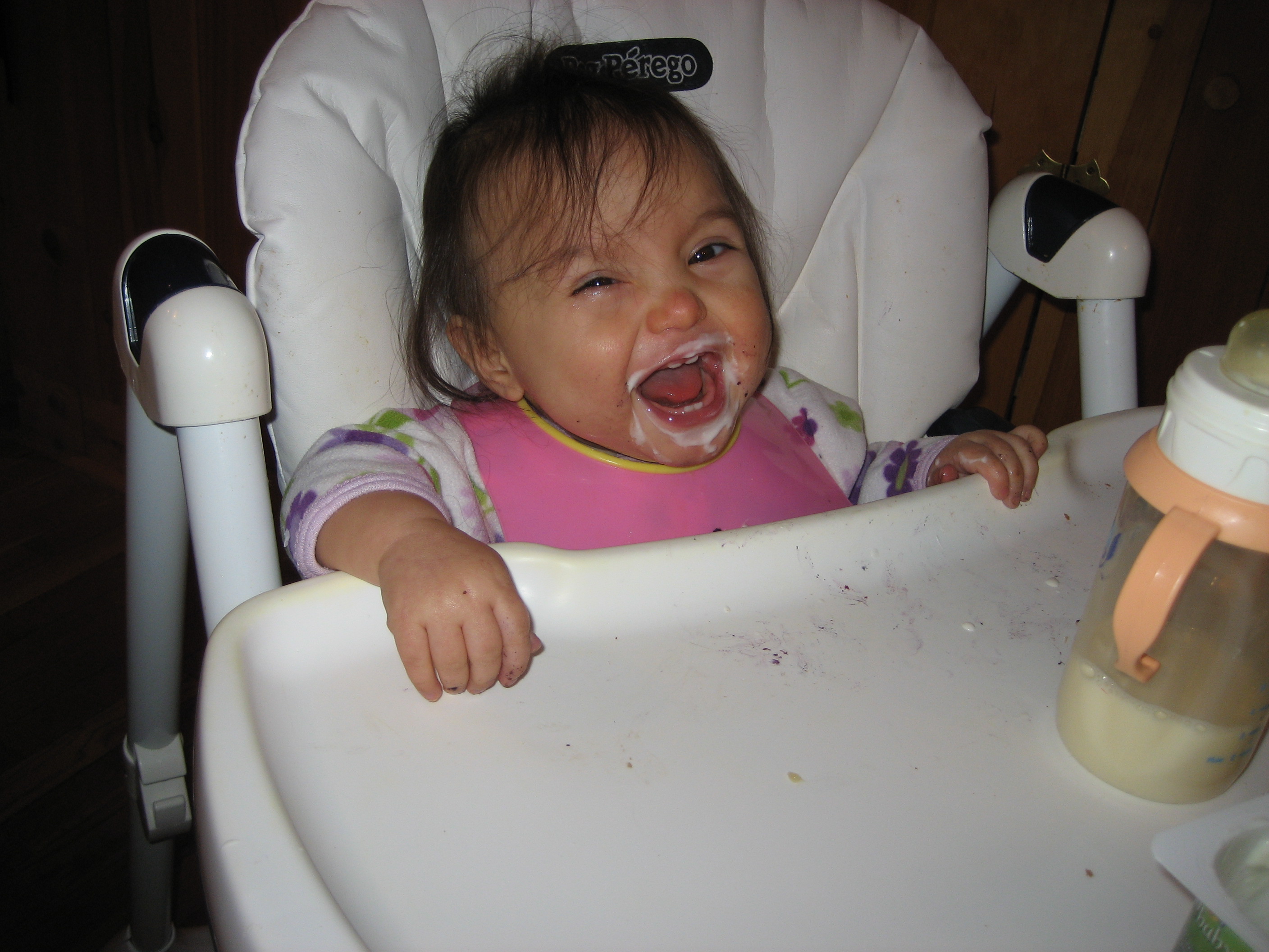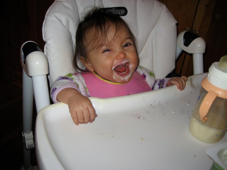-When each of our daughters started sitting in a high chair and eating solid foods, they did so quite messily. So, at the end of each meal, we would wipe their hands and faces with a wet washcloth to prevent them from looking like human sculptures of mashed sweet potatoes. Remember, now, we did this following every single meal, three meals a day, for at least a year. We applied gentle pressure as we wiped, and the washcloth was pleasingly warm. In a spa setting, you’d pay good money for this kind of service. But every single one of our daughters would SCREAM like we were taking a Brillo pad to them, every single time we wiped them down. Now that it’s Georgia’s turn for the thrice-daily screamfest, I again find myself wondering, “WHY is this such a traumatic surprise to you? Isn’t this the exact same thing I did after your LAST meal? Not to mention EVERY meal?!?”