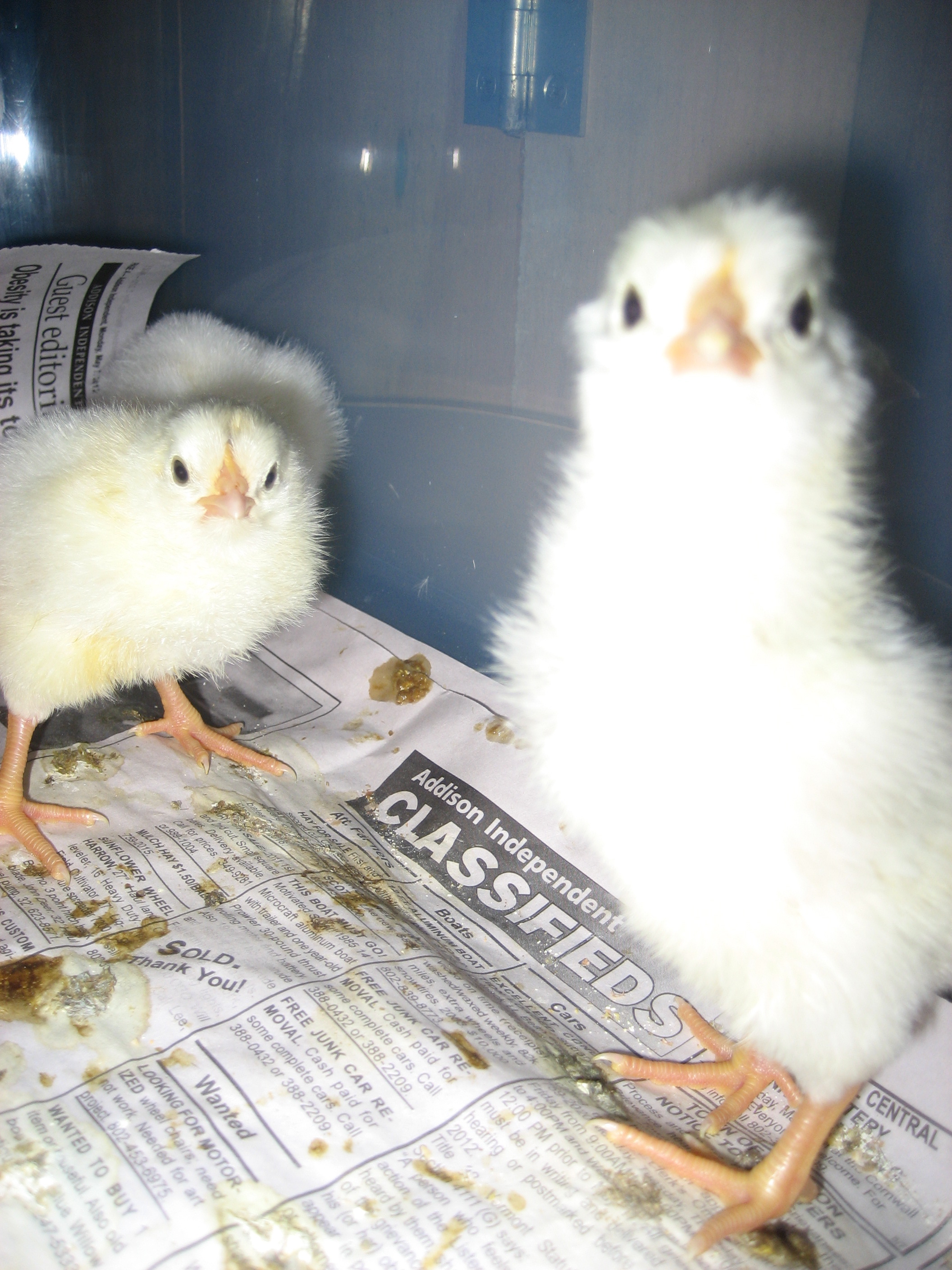 And then, right at the end of your first year in Vermont, when things with the kids and the house and the yard seemed to be getting under control, your daughter’s preschool class obtained an incubator full of eggs for hatching. Back when you were in preschool, your class hatched eggs, too, but you never really considered what happened to the chicks after they’d hatched and been cooed over by the class. No doubt they were driven out to the country somewhere. But NOW, YOU live in the country, so here’s what happens at your daughter’s preschool: Near the end of the 21-day incubation period, a sign-up sheet appears on a large poster, decorated by your daughter’s class with adorable chick pictures, which says, “HELP US FIND GOOD HOMES FOR OUR CHICKS!” The pick-up day is in one week.