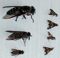 Rounding out the summer lineup are DEER FLIES and HORSE FLIES. We have plenty of both of these annoying, buzzy flies. They’re distinguishable because horse flies tend to be a little larger, and to have longer, thinner wings. The females of each type can give nasty bites.