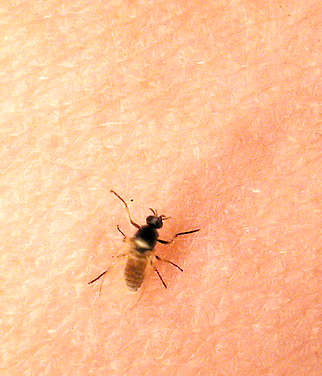 Aside from the mosquitoes, the most irritating summer bugs are those that, around these parts, are called “NO-SEE-UMS.” The official name for these nuisances is “biting midges,” but “no-see-ums” is just as accurate. They’re teeny-tiny little specks, so you don’t see ‘um, you see? But you sure as heck can feel them. They seem to travel in packs of no less than 100, and swarm around your head whenever you stop moving.
