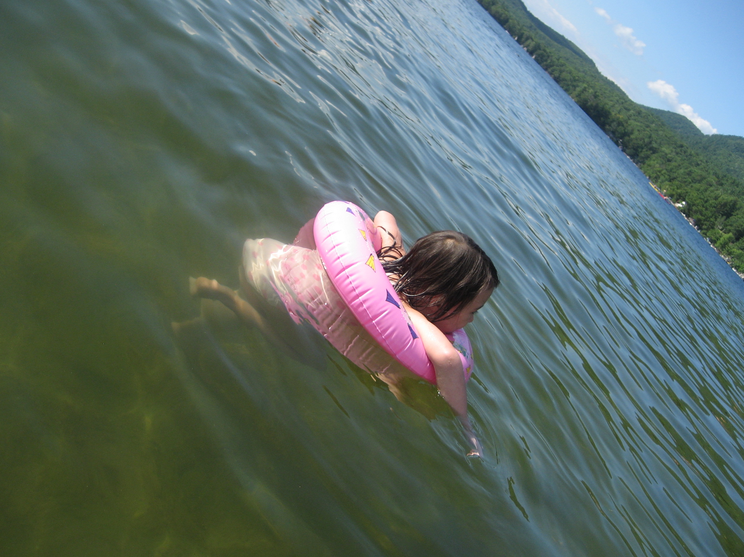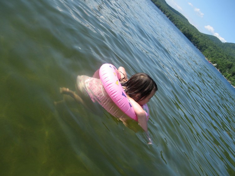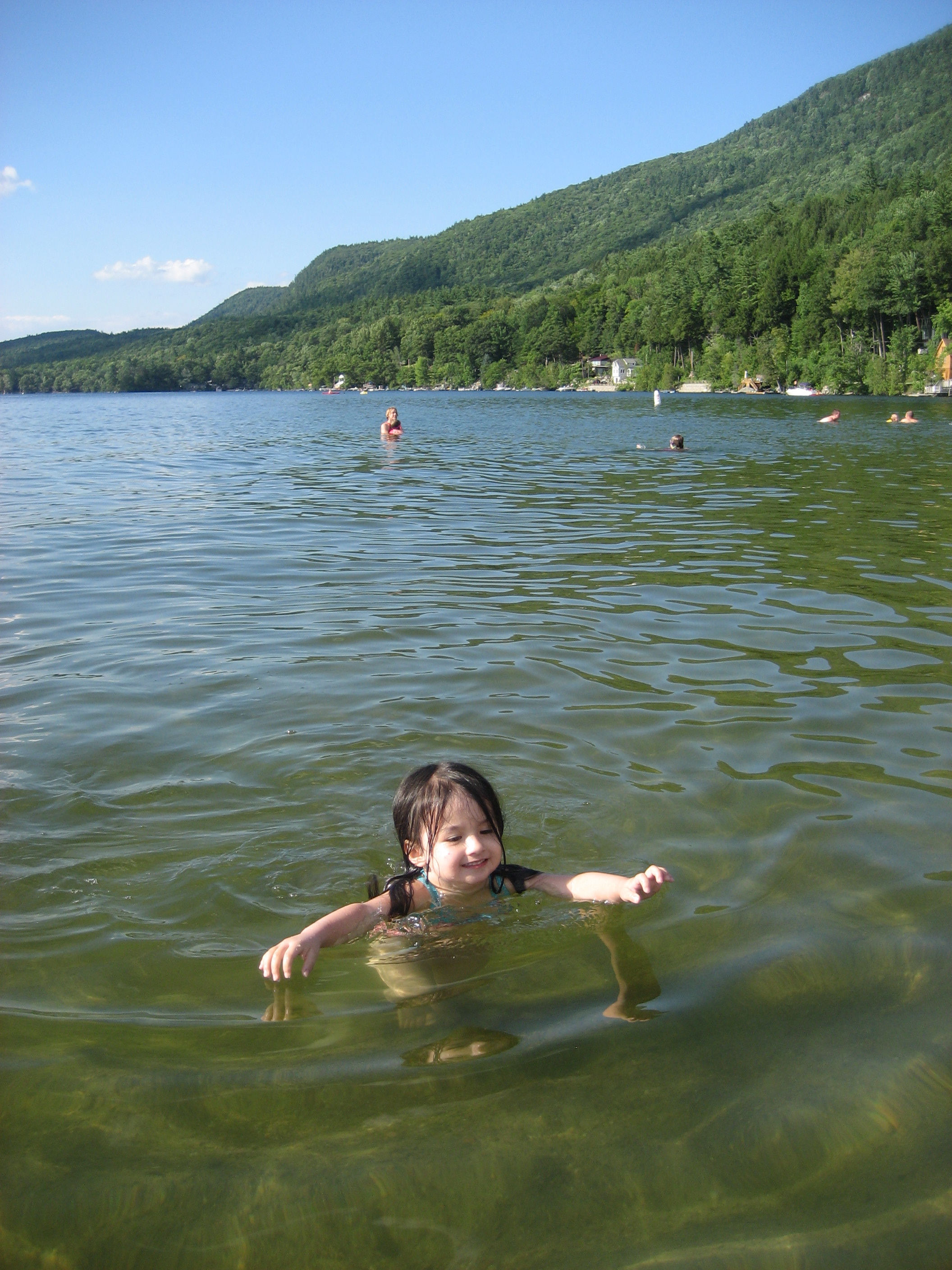 Head for the Water! Our town has a pool, but we’ve never been to it because this area affords so many opportunities to enjoy water in its natural state. As we did last summer, we’re back in the groove of weekly visits to Branbury State Park, the public beach on the shores of Lake Dunmore. This year, we discovered the fun of taking the ferry across Lake Champlain; if you board in Charlotte, VT, you’ll land in Essex, NY, a charming little town with an ice cream parlor conveniently located a stone’s throw from the ferry dock. Another new adventure in Summer 2012: swimming in a river, which is slightly more exciting and –in our family, at least — requires adult back-up due to the slippery rocks that line the banks. There are several rivers and swimming holes to choose from around town, but our girls’ favorite is the New Haven River at Dog Team Falls.