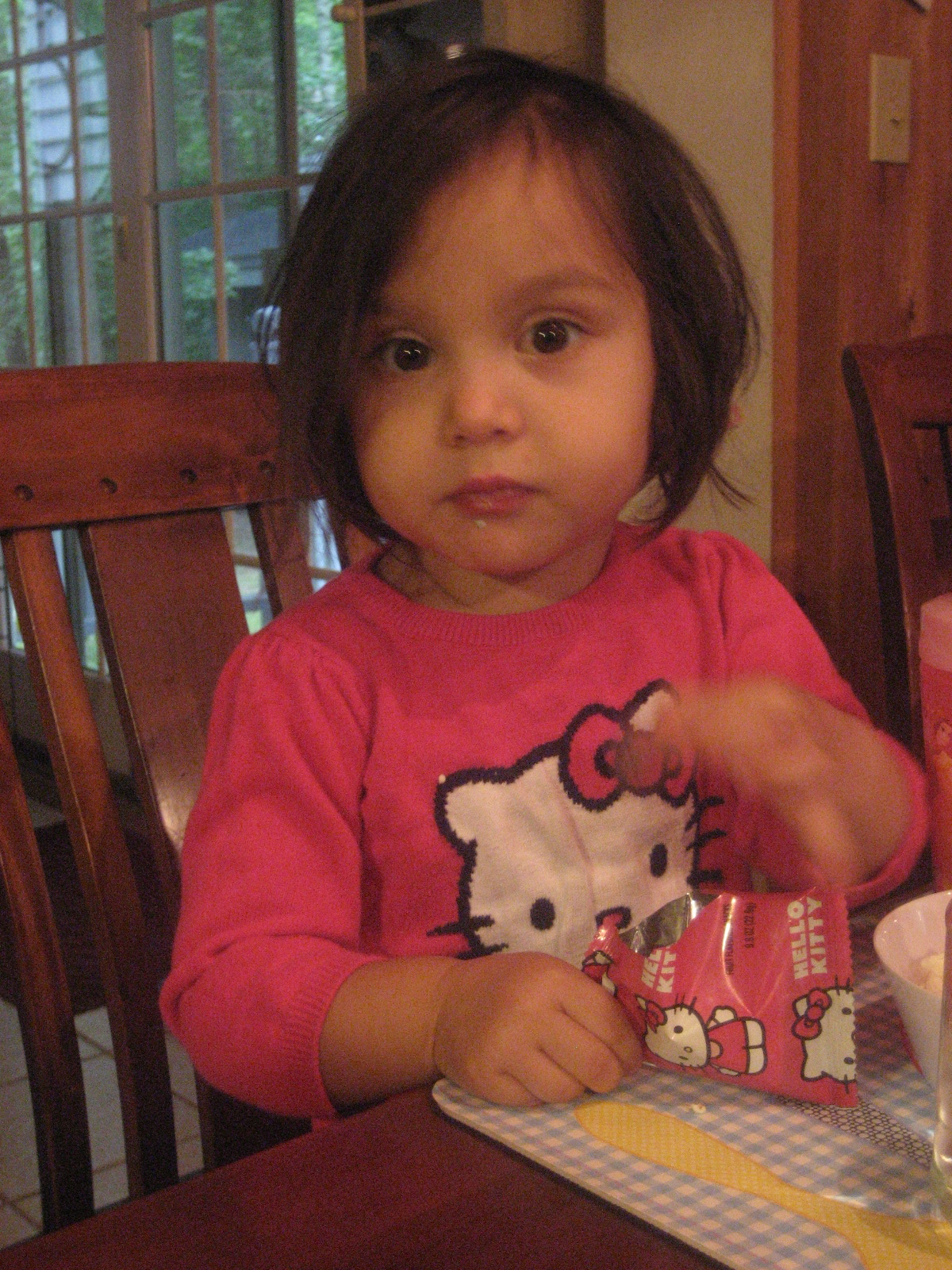 I’ve written before about fruit chews: small packets officially labeled “Fruit Flavored Snacks,” known to most non-Gong children as “gummies.” I’m not quite sure how fruit chews became a staple of my children’s diet, since I never ate them as a child and wouldn’t have purchased them on my own. I’m guessing they were introduced to our girls by friends, or even (gasp!) grandparents. I feel vaguely shameful about giving my children daily fruit chew snacks, since I’m aware that they’re probably bad for the teeth and have little nutritional value. But I’ve continued to buy them because my daughters have to eat something, and I figure that if you can’t eat a little junk when you’re a kid, when can you???