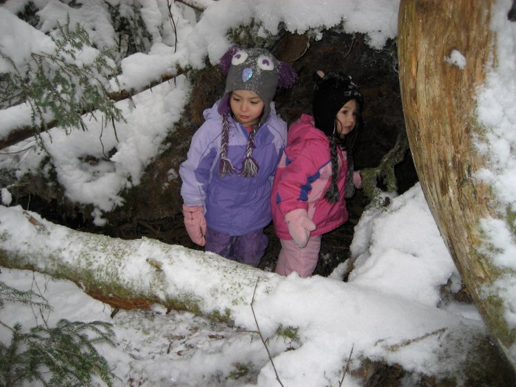 They might wear gloves when it’s 40 degrees, but the kids here are pretty tough when it comes to braving the elements. During the rainy months in Berkeley, there were entire weeks when we didn’t leave the house. In contrast, Fiona’s preschool sends the kids outside in all weather. And I mean ALL. They’re always out on the playground when I go pick her up. Last month, as I drove to her preschool I thought, “Hmmm, it’s 38 degrees with a freezing drizzle. They’re probably inside this afternoon.” Nope. There was my child, mucking around in the cold rain with a stick in the woods (yes, the school playground includes woods). I actually think this is excellent.