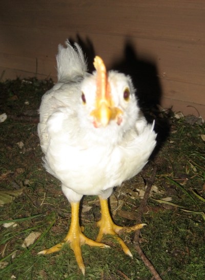 I wasn’t totally devastated; it’s pretty rare for a chicken to die of old age. Although I’d have liked to have gotten a few eggs out of this hen before she became Brinkley’s chew toy, chickens don’t usually inspire deep affection. They’re not cuddly creatures; even as chicks, our chickens hated to be held, and now it’s almost impossible to catch them. They’re nervous, flighty creatures whose main interest is food.