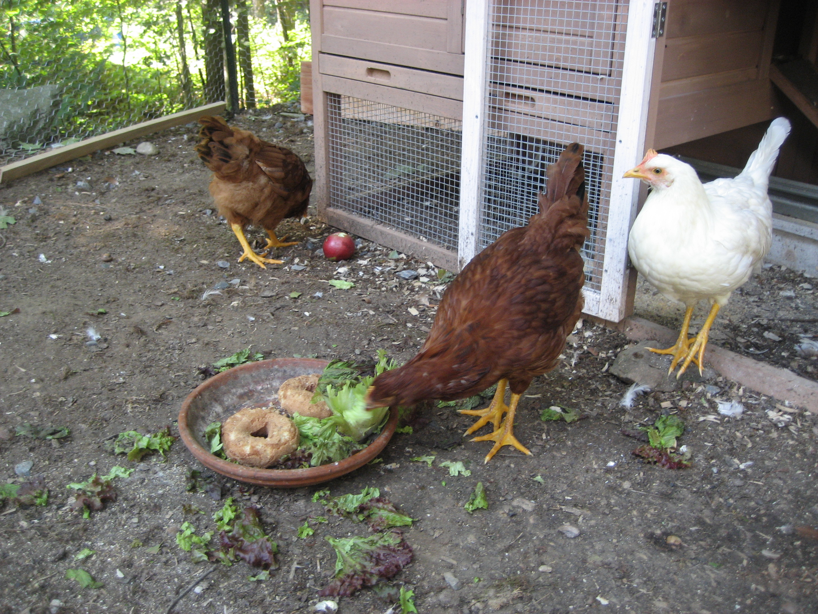 Of course, it hasn’t all been smooth sailing. First we had to resolve the tiny little issue of whether we were allowed to keep chickens in our neighborhood at all. Our kind neighbors, neither of whom minded us keeping chickens, both mentioned in passing that we should know that there was some sort of “Neighborhood Covenant” forbidding the keeping of farm animals. Huh?!? In Vermont?!? But we wanted to be good neighbors; I didn’t relish the idea of trying to keep chickens secret. We hadn’t been told of any “Neighborhood Covenant” when we bought the house, but there was a reference to it in our Deed. Good girl that I am, I went over to the Town Clerk’s office and pulled up the Covenant. It does exist, it does forbid the keeping of “anything other than domestic animals,” (and sets strict limits on what color you can stain your house), AND…it expired the year we moved in! So our chickens are legal. (And now we’re now planning to paint our house purple and start grazing cows on the lawn).